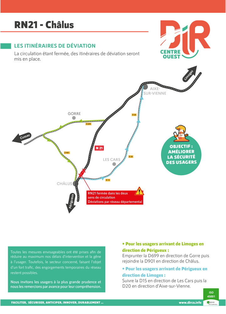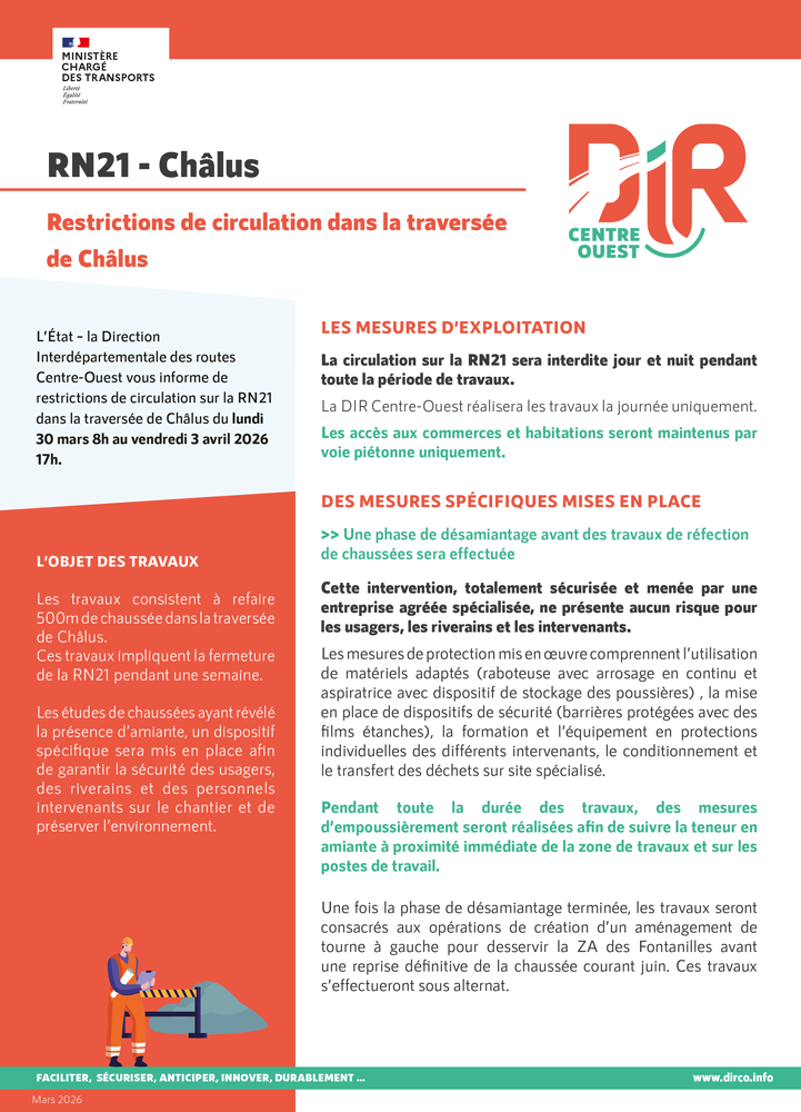RN21 - Restrictions de circulation dans la traversée de Châlus